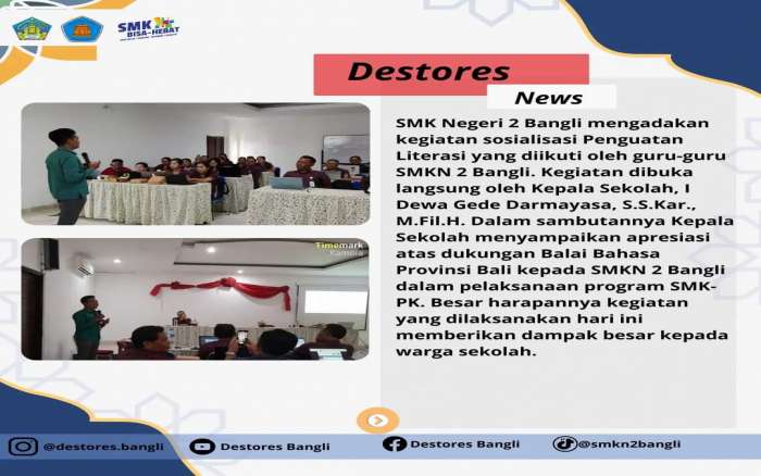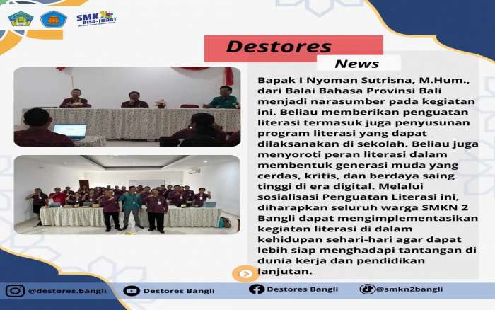 Kegiatan Sosialisasi Penguatan Literasi di SMK Negeri 2 Bangli dengan narasumber Bapak I Nyoman Sutrisna, M. Hum., Balai Bahasa Provinsi Bali
