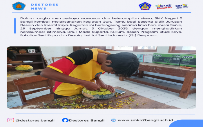 SMK Negeri 2 Bangli Hadirkan Guru Tamu dari ISI Bali: BelajarSeni Fruit Carving Bersama Drs. I Made Suparta, M.Hum