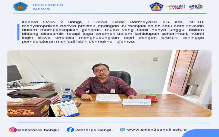 Kepala SMK Negeri 2 Bangli, I Dewa Gede Darmaysa, S.S, Kar., M.Fil.H, menyampaikan rasa syukur dan bangganya atas pencapean tersebut. "kami merasa bangga, karena siswa kami terpilih menjadi bagian dari