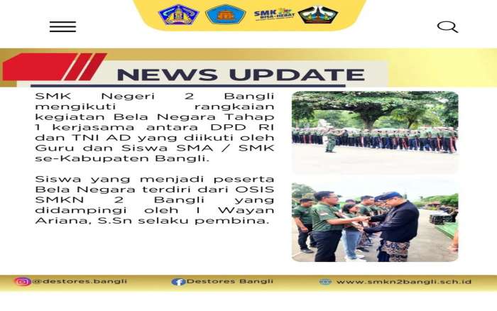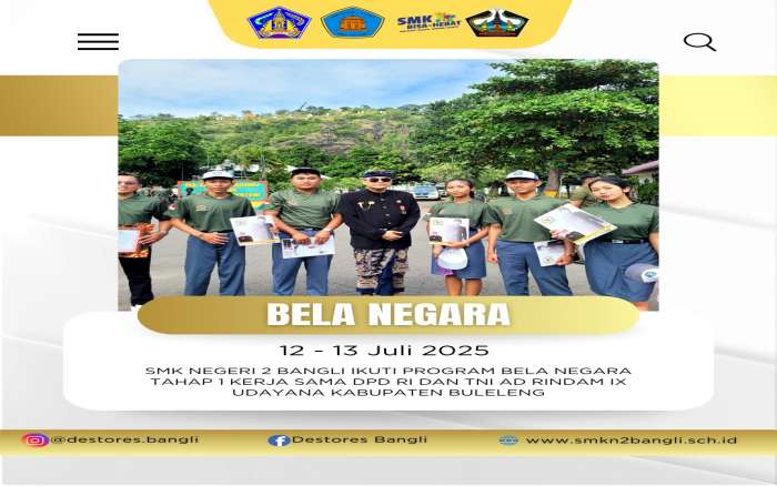Sabtu, 12 Juli 2025. Sebuah kesempatan luar biasa bagi SMK Negeri 2 Bangli dapat mengikuti serangkaian kegiatan Program Bela Negara Tahap 1 kerja sama antar DPD RI dan TNI AD,