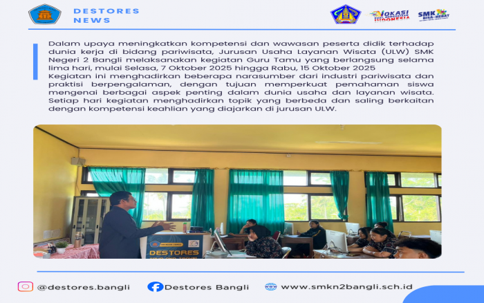 Kegiatan Guru Tamu Jurusan Usaha Layanan Wisata SMK Negeri 2 Bangli: Mengasah Kompetensi Siswa Menuj.