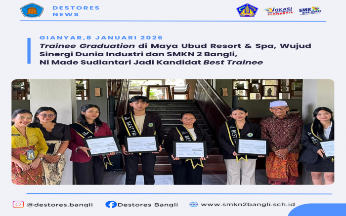 Maya Ubud Resort & Spa menyelenggarakan kegiatan Trainee Graduation bagi siswa SMKN 2 Bangli yang telah menyelesaikan program pelatihan industri pada Kamis, 8 Januari 2026. Kegiatan ini berlangsung di Mayasari
